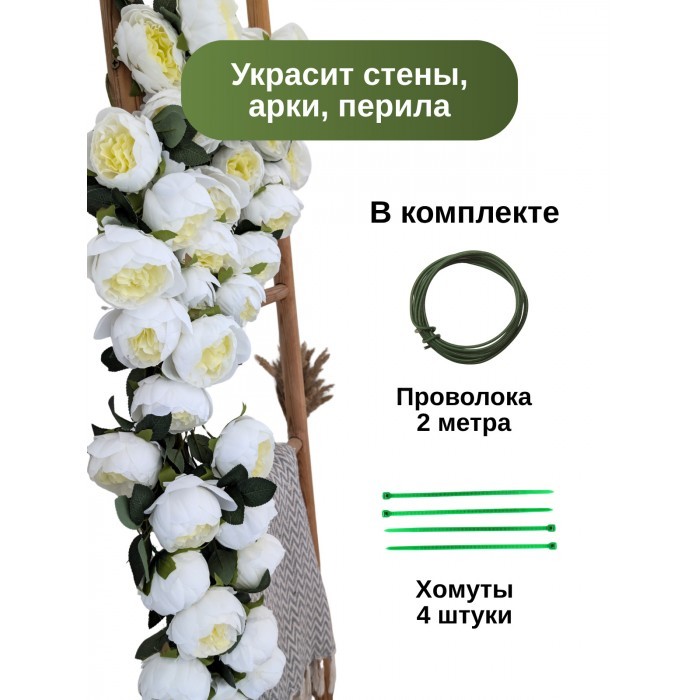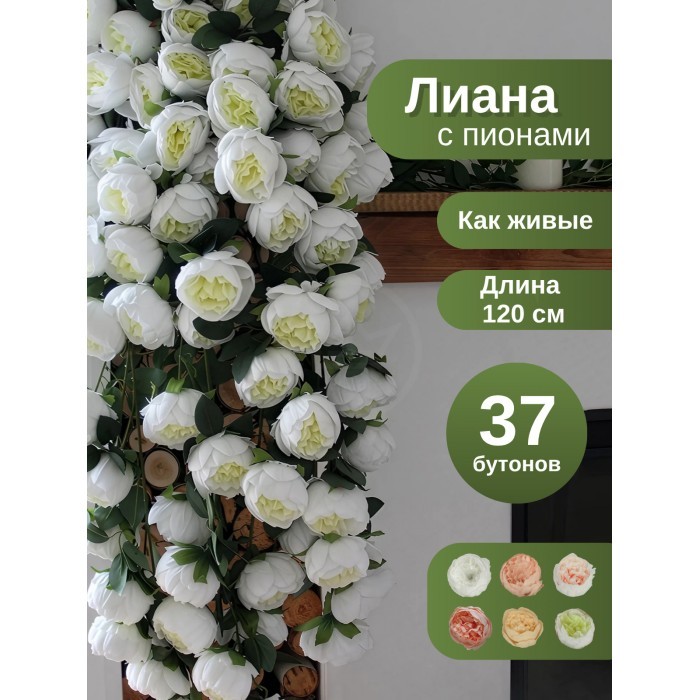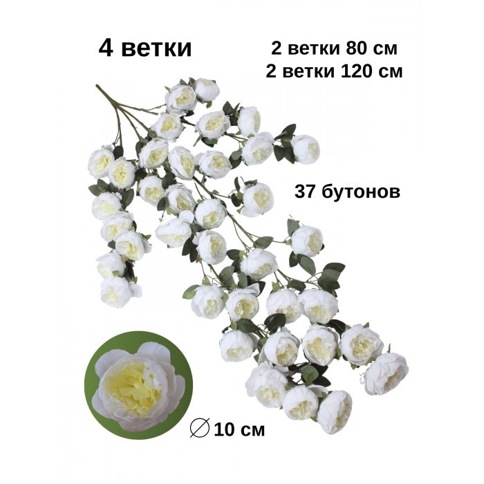 Цветы искуственные Пионы каскадные (37 штук, 120 см, цветок 10 см) бело зеленый 265902