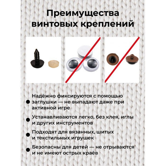 Глазки винтовые черные с фиксатором (300 штук-5мм, 6мм, 7мм/300 фиксаторов) 265559