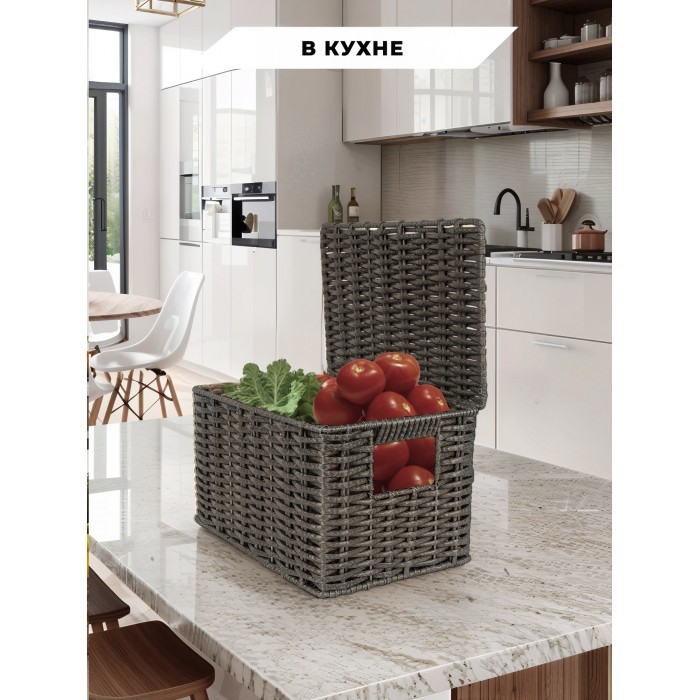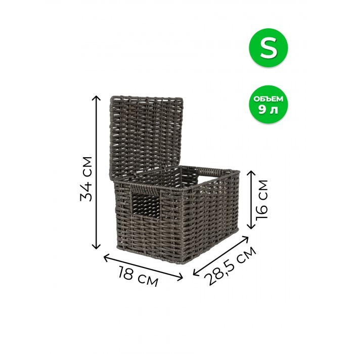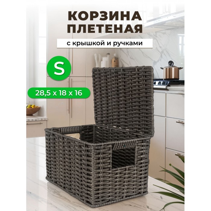 Корзина плетеная с/крыш S 290*190*160-mpl-fbo иск/ротанг, серый 265521