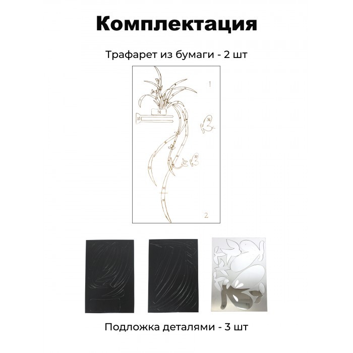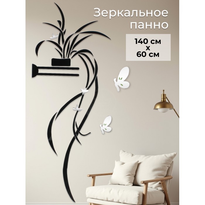 Интерьерные зеркальные наклейки Цветок ( 120*60 см, трафарет) черный/серебро 264244