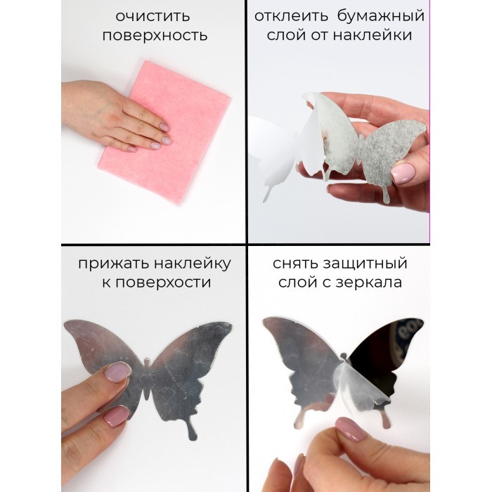 Интерьерные зеркальные наклейки Бабочки-1 набор ( 36 штук ) серебро 260031