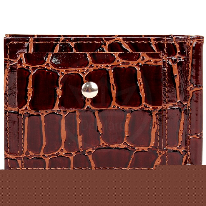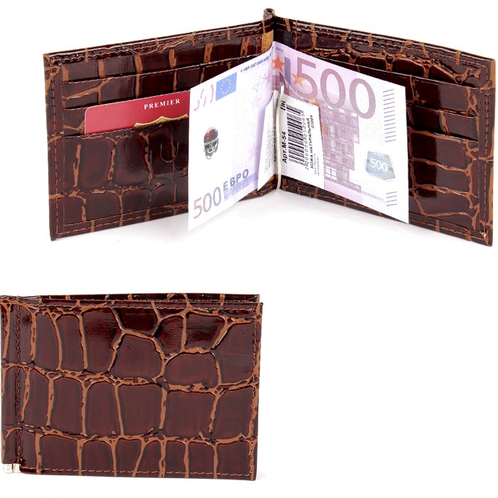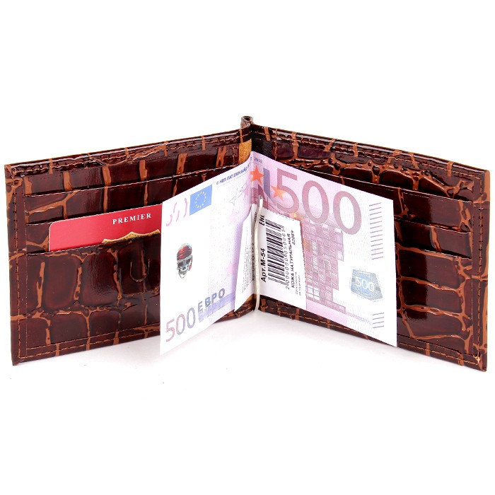 Зажим для купюр Premier-М-54 натуральная кожа (8 карм+карм под мелочь) коричневый темный крокодил крупный (3) 159188