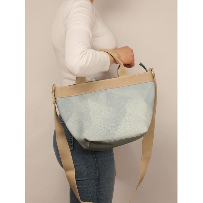 Сумка женская искусственная кожа DJ-СМ 7518-BLUE JEAN, 1отд, плечевой ремень, голубой/бежевый SALE 265226