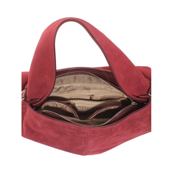 Сумка женская натуральная замша ADEL-281-405 (отделка ИСК/КОЖА), 1отд, плечевой ремень, бордо 266027